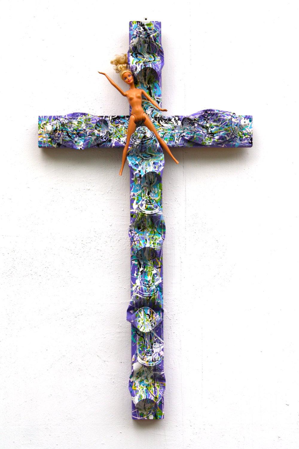 Original sculpture street art Barbie spray cans drip abstract expressionism pop cross Jackson Pollock mixed media Chris Riggs
